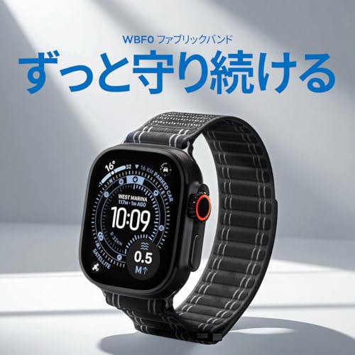 Apple Watch バンド 49/46/45/44mm のフィット感を誇るアップルウォッチバンド Apple Watch Ultra 3/Ultra 2/Ultra/11/10/9/8/7/6/5/4/SE3/SE2/SE対応 ストラップ ナイロン ファブリック 通気性 WBF0 AMP10141 (ブラック)