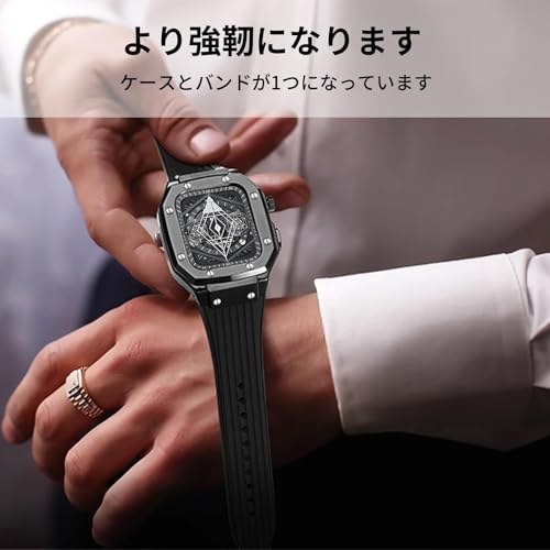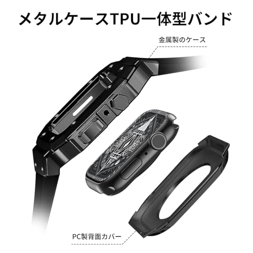 ANYOI 対応 Apple Watch バンド 合金製 Series 9/8/7/SE3/SE2/SE/6/5/4 アップルウォッチ バンド ケース 一体型 バンド 交換ベルト あっふウォッチバンド 耐衝撃 通気 男女通用(45mm/44mm,ブラック)