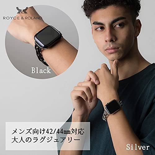 Royce&Roland Apple watch チェーンバンド おしゃれ アップルウォッチ 時計 バンド (ステンレス/シルバー) レディース メンズ ギフト プレゼント (44mm 45mm 46mm 49mm, ブラック)