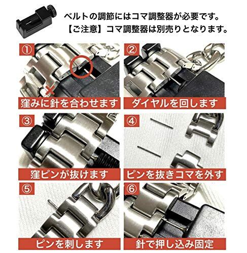 【硬めの作りで落下防止】落下を防止するため、ロック式の留め具は硬めの作りになっています。 使用していく中で次第に開閉しやすくなります。※コマ調整は、必ずベルト側面のピン穴が窪んでいる方からベルト裏面の矢印の方向へ向けて針を刺して下さい。反対側からは脱落防止のため抜けない構造となっております。※コマ調整器は別売りとなります。