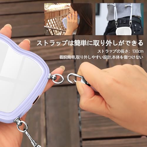 Google pixel 7A 用の ケース ショルダー クリア TPU ピクセル 7a スマホケース カバー 創意 個性 肩掛け 首掛け 斜めかけケース 可愛い かわいい 韓国 透明 耐衝撃(パープル)