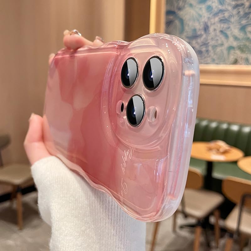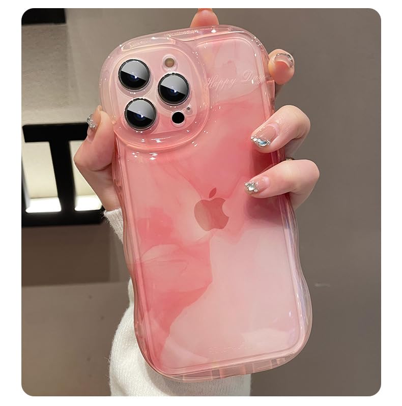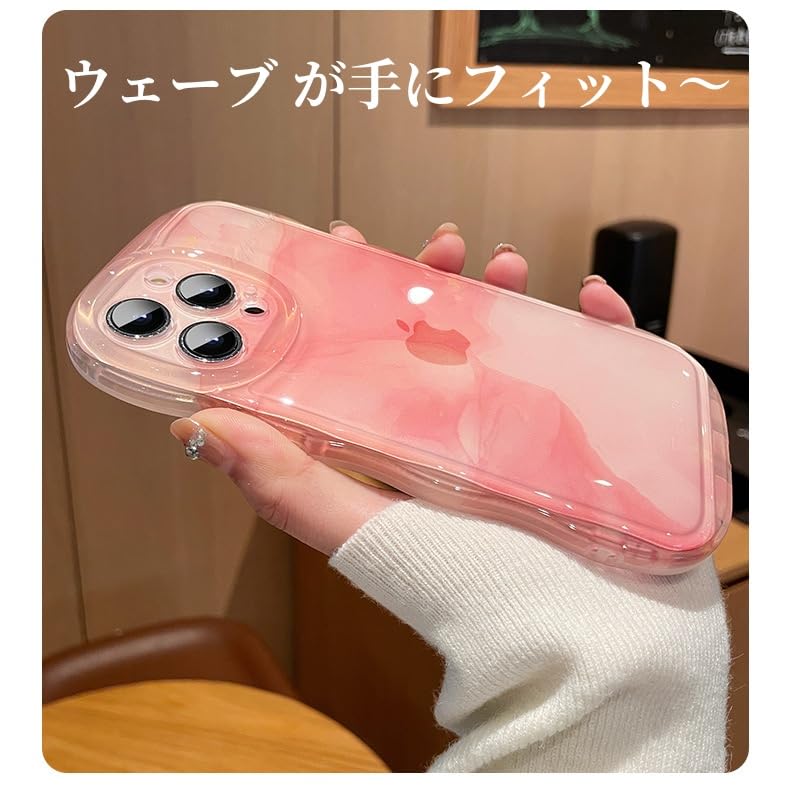 iPhone 15 Pro ケース 大理石柄 ウェーブ 波型 可愛い 韓国 アイフォン15 Pro ケース 半透明 マーブル 水墨画 ぼかし 大理石柄 グラデーション 女性向け お洒落,ピンク