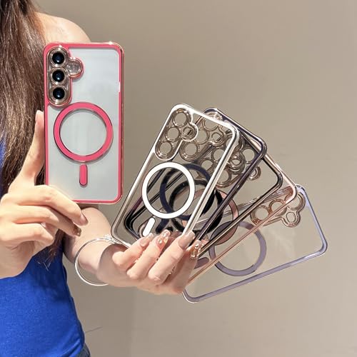 ZTOFERA Samsung Galaxy A56 5G 用 クリアケース MagSafe対応 マグネット搭載 サムスン ギャラクシーa56 ケース 韓国 可愛い おしゃれ 人気 スマホケース 軽量 女性 アクリル ハードバック 柔らかいバンパー カバー メッキエッジ 落下防止 耐衝撃 マグセーフ対応 磁気ケース (パープル)