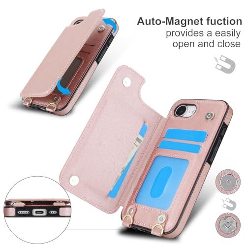 GOKIGIOD 適用 iPhone 16E ケース ショルダー 窓口式 カード入れ スマホケース ストラップ付き アイホン 16E カバー 手帳型 斜めがけ 可愛い アイフォン16E ショルダーケース いPhone16E 首かけ 肩掛け かわいい おしゃれ RFIDスキミング防止機能 ロング クロスボディ 携帯カバー ピンク