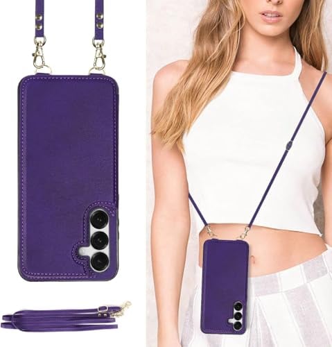 GOKIGIOD 適用 Galaxy S25 5g ケース ショルダー 窓口式 カード入れ スマホケース ストラップ付き ぎゃらくしーS25 SC-51F SCG31 SM-S931Z カバー 手帳型 斜めがけ 可愛い GalaxyS25 ショルダーケース 首かけ 肩掛け かわいい おしゃれ RFIDスキミング防止機能 ロング クロスボディ 携帯カバー パープル