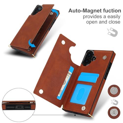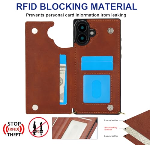 GOKIGIOD 適用 iphone 16 ケース ショルダー 窓口式 カード入れ スマホケース ストラップ付き アイフォン16 カバー 手帳型 斜めがけ 可愛い iphone16 ショルダーケース 首かけ 肩掛け かわいい おしゃれ RFIDスキミング防止機能 ロング クロスボディ 携帯カバー ブラウン