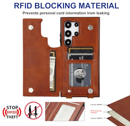 GOKIGIOD 適用 Galaxy S25 Ultra ケース ショルダー 窓口式 カード入れ スマホケース ストラップ付き ぎゃらくしーS25ウルトラ SC-52F SCG32 カバー 手帳型 斜めがけ 可愛い GalaxyS25Ultra ショルダーケース 首かけ 肩掛け かわいい おしゃれ RFIDスキミング防止機能 ロング クロスボディ 携帯カバー ブラウン