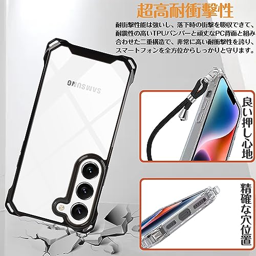 Galaxy S24 ケース クリア PC ショルダー 軽量 耐衝撃 カバー ギャラクシーS24 SC-51E / SCG25 ケース 透明 薄型 軽量 PC背面 + TPUバンパー 二層構造 携帯ケース 首掛け 肩掛け 斜めかけ 縄掛けケース ストラップ付き 1.5M 取り外し可能 縦/横 2WAY 調節可能な 全面保護 落下防止 衝撃吸収 ワイヤレス充電対応 (ブラック)