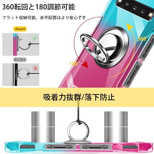 【360°回転】ブラケットは360°回転できます、垂直画面で小説を読むことができます、または、画面全体でビデオを見る。一指着る式で、指がリングに通り抜け、片手で携帯を操作でき、落下防止します。