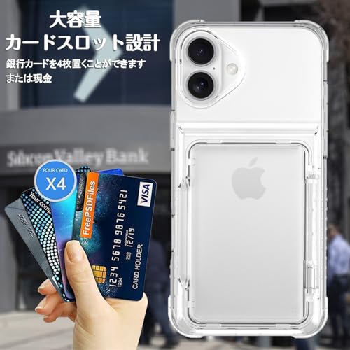 対応 iPhone 17 用 ケース カード収納 クリア 背面 米軍MIL規格 耐衝撃 アイフォン17 ケース ICカード収納 透明 落下防止 全面保護 滑り止め 擦り傷防止 クリア