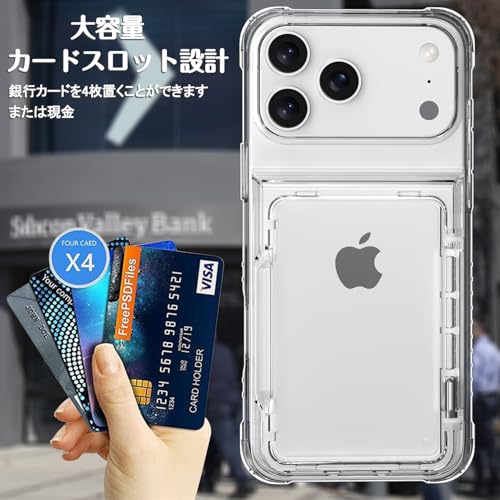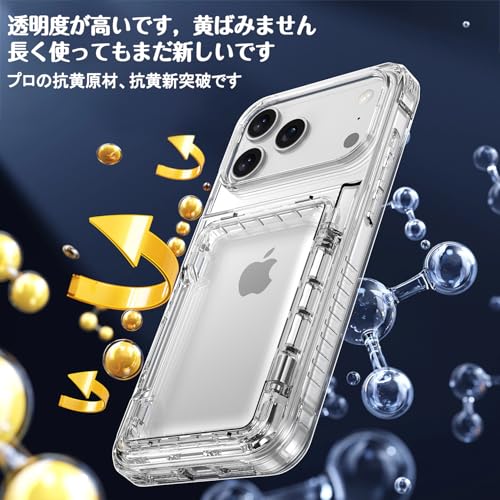 対応 iPhone 17 Pro Max 用 ケース カード収納 クリア 背面 米軍MIL規格 耐衝撃 アイフォン 17 Pro Max ケース ICカード収納 透明 落下防止 全面保護 滑り止め 擦り傷防止 クリア