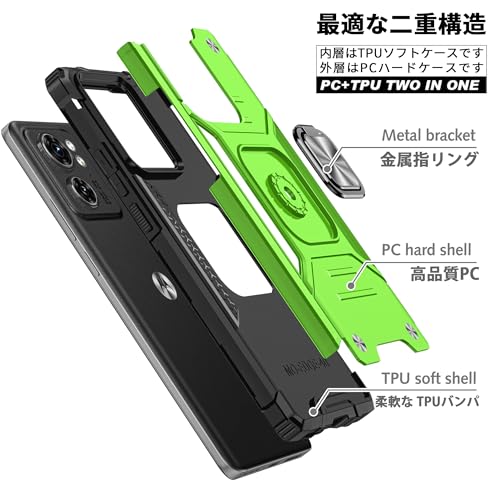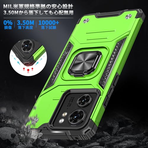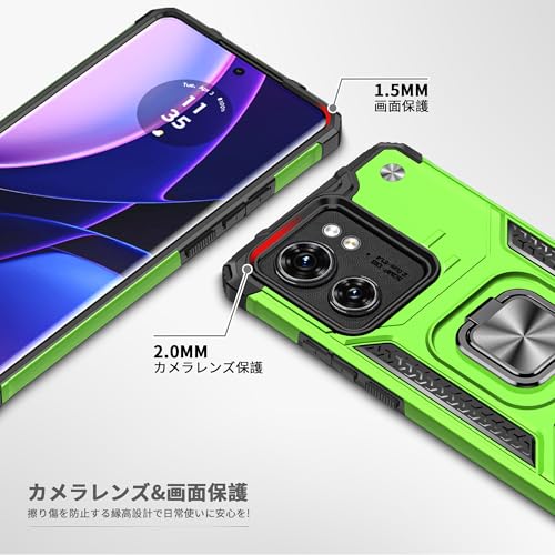 Motorola Edge 40 Neo 用 ケース リング付き 耐衝撃 米軍MIL規格取得 Edge 40 Neo 用 カバー レンズ保護 リングつき TPU+PC 指紋防止 車載ホルダー対応 スタンド機能 防塵 薄型 軽量 落下防止 擦り傷防止 浅緑 C82-edge 40n-05