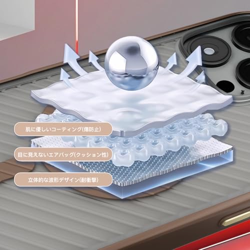 iPhone 15 Pro Max ケース MagSafe対応 【立体波形デザイン】 耐衝撃 肌に優しい感触 滑り止め ワイヤレス充電対応 いphone 15 ProMax スマホケース 衝撃吸収 ストラップホール付き アイフォン 15ProMax カバー 指紋防止 落下防止 防塵 傷防止 人気 半透明 (ブラウン)