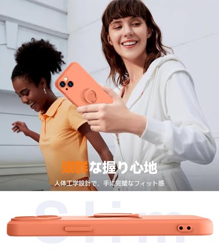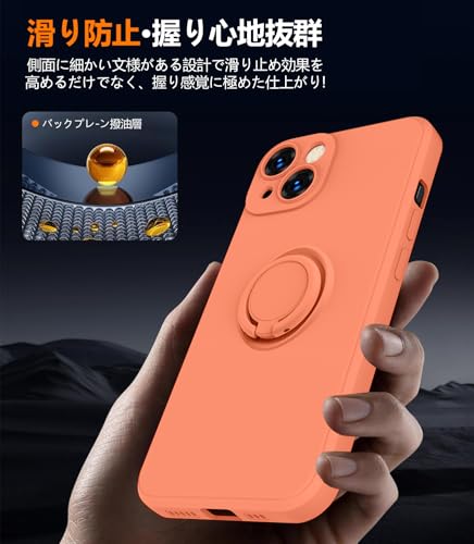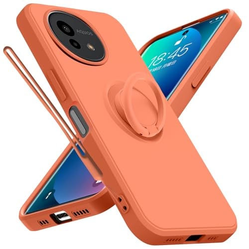 AQUOS Wish 4 用 ケース リング ストラップ付き SH-52E カバー ストラップホール付き ソフト シリコン ケース おしゃれ 耐衝撃 軽量 薄型 スタンド機能 車載ホルダー対応 アクオス ウィッシュ4 携帯ケース オレンジ R-YTDS-Wish4-08
