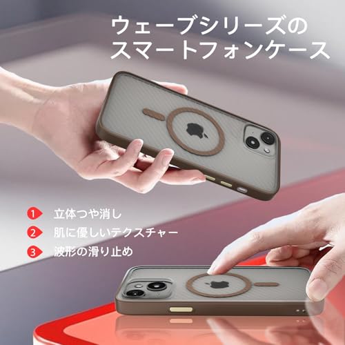 iPhone 14 Plus ケース iPhone 15 Plus ケース MagSafe対応 【立体波形デザイン】 耐衝撃 肌に優しい感触 滑り止め ワイヤレス充電対応 いphone 14Plus/15Plus スマホケース 衝撃吸収 ストラップホール付き アイフォン 14Plus/15Plus カバー 指紋防止 落下防止 防塵 傷防止 人気 半透明 (ブラウン)