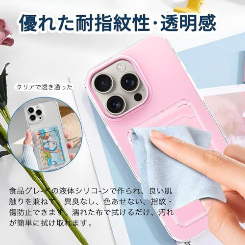iPhone 16 Pro Max 用 ケース 背面ポケット カード収納 ショルダー iPhone 16 Pro Max 用 カバー 斜めかけ 縄掛け 肩掛け 首掛け ストラップ付き 薄型 軽量 TPU バンパー 韓国 可愛い かわいい アイフォン16プロ マックス 用 スマホケース (ピンク)