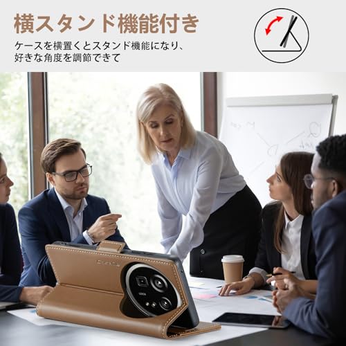 【収納機能&横スタンド機能付き】 ケース側にはカード収納3箇所、フリーポケットが1箇所あります、名刺、クレジットカード、定期券の収納に優れています。カード、建物、地下鉄またはその他の交通機関へのアクセスのために定期的にカードをスワイプする人に最適です。横置きスタンド機能が付いて、好きな角度で動画鑑賞や読書などを楽しめます