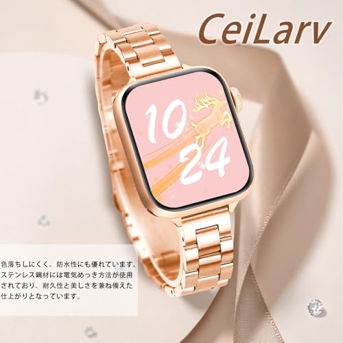 [CeiLarv] 金属 バンド コンパチブル Apple Watch 42mm 44mm 45mm 46mm 49mm アップルウォッチ バンド ステンレス製 レディース 長さ調節 防錆 耐久性 時計ベルト Apple Watch Ultra/SE 3 2 1 49mm/44mm / Series 11 10 9 8 7 6 5 4 3 2 1 対応 - ローズゴールド