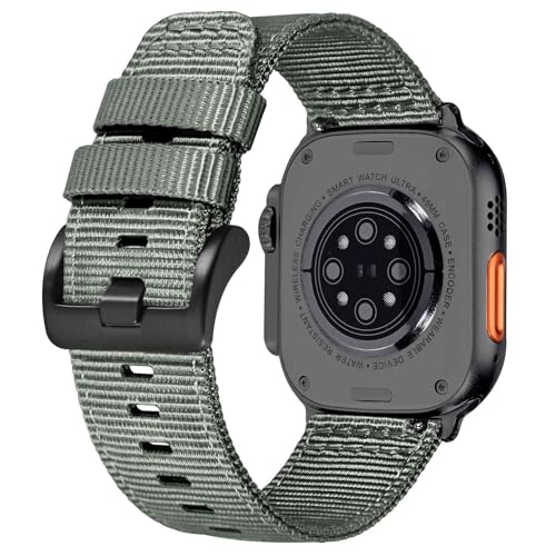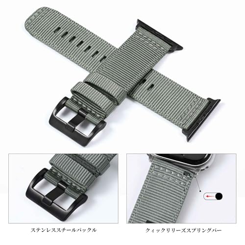 MABEKSコンパチブル Apple Watchバンド 38mm 40mm 41mmミリタリーナイロン時計バンド グレー·ブラックバックルスマートウォッチバンド 男性用