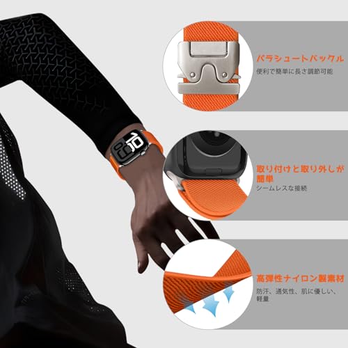 ShinKin 弾性ナイロンバンド Apple Watch 対応 49mm /45mm /44mm /42mm /46mm(Series 11、10) / Apple Watch Ultra/SE/Series 11 10 9 8 7 6 5 4 3 2 1 対応 交換ベルト 交換バンド な軽く快適で柔らかい 替えストラップ 伸縮性 ナイロンスポーツ 時計ベルト 取り付けが簡単 - オレンジカラー