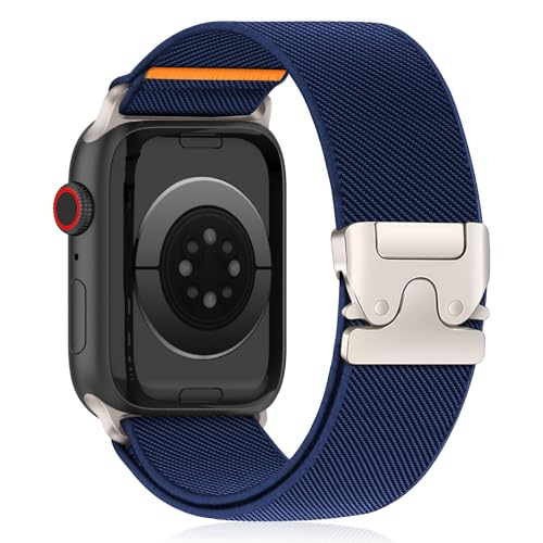 ShinKin 弾性ナイロンバンド Apple Watch 対応 41mm /40mm /38mm /42mm(Series 11、10) / Apple Watch SE/Series 11 10 9 8 7 6 5 4 3 2 1 対応 交換ベルト 交換バンド な軽く快適で柔らかい 替えストラップ 伸縮性 ナイロンスポーツ 時計ベルト パラシュートバックル 取り付けが簡単 - ダークブルー