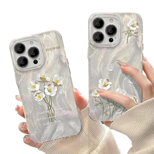 LUCKCOF ケース For iPhone 14 Pro 可愛い 花柄 韓国 キラキラ ボウノット TPUカバー 衝撃吸収 落下防止 アイフォン 14 Pro 專用スマホ ケース カバー 薄型 特製スマホケース レンズ保護 スレ傷防止 女子力 ファッションクリエイティブかわいい 美しい携帯電話ケース