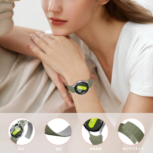 [LanQii] バンド 用の Samsung Galaxy Watch 7/6/5/4 (40mm 44mm)/Samsung Galaxy Watch FE/Galaxy Watch 6 Classic (43mm 47mm) 対応 シリコーン 磁気ストラップ バンド 柔軟 軽量 防水 グリーン グレー