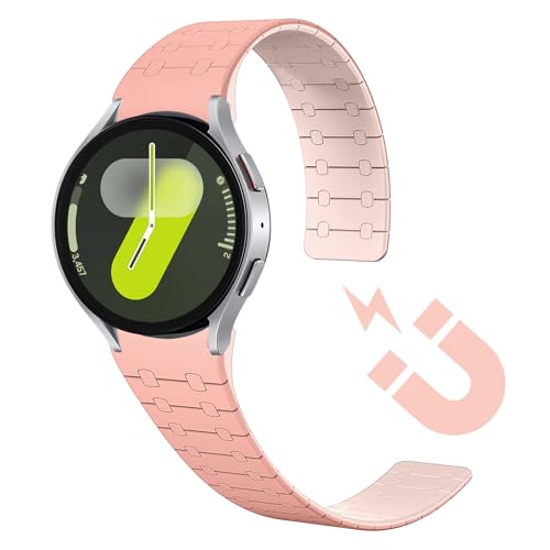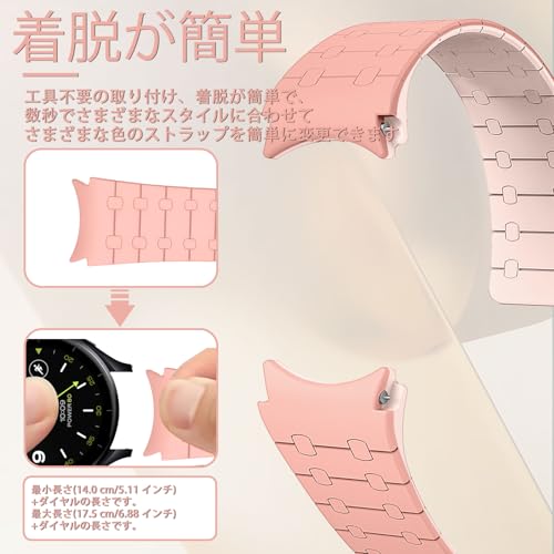 [LanQii] バンド 用の Samsung Galaxy Watch 7/6/5/4 (40mm 44mm)/Samsung Galaxy Watch FE/Galaxy Watch 6 Classic (43mm 47mm) 対応 シリコーン 磁気ストラップ バンド 柔軟 軽量 防水 ピンク