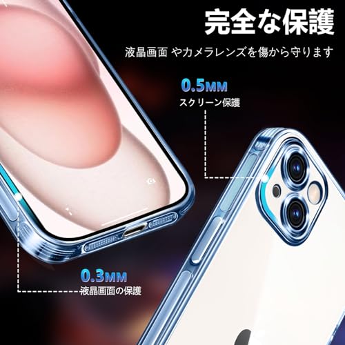 ALIGADUO iPhone 15 クリア ケース 耐衝撃 米軍MIL規格 アイフォン15 スマホケース PC背面 TPU 保護ケース バンパー カバー 傷つけ防止 ワイヤレス充電対応 クリアバック 6.1インチ用(ブルー)