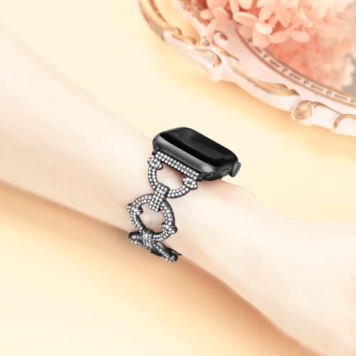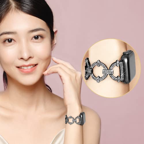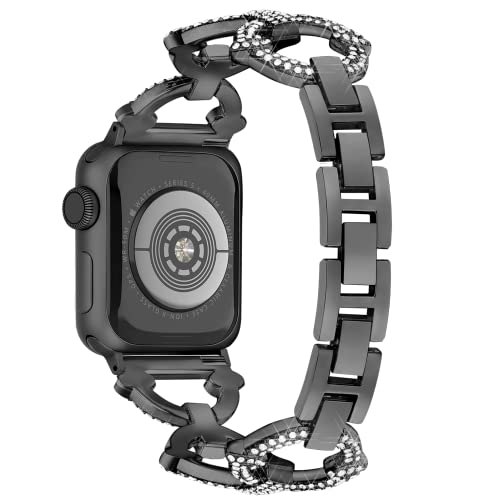 【Daturus】互換Apple Watch ベルト アップルウォッチバンド 丸型 ダイヤモンド付き 金属ベルト series 9/8/7/6/SE/5/4/3/2/1対応 女性向け 華やか ファッション ツールなし調節可能(ブラック、42mm/44mm/45mm/49mm)
