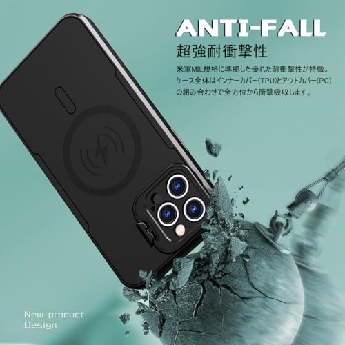YUZOR for IPhone 12 Pro Max ケース 米軍MIL規格の保護 耐衝撃 隠れスタンド いphone12ProMax ケース MagSafe対応 アイフォン 6.7インチ CFYJ-12ProMax-hei
