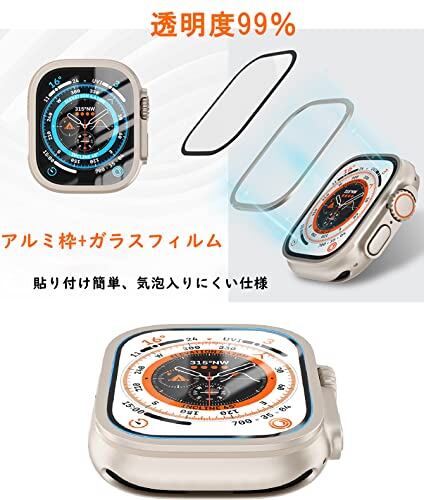 アップルウォッチ Ultra 保護フィルム 液晶保護カバー 【 アルミ枠 バンパー & ガラスフィルム 一体型 】 49mm専用 画面全面保護 Apple Watch ultra 強化ガラス 保護 アップルウォッチ ultra フィルム キズ防止 高透過率 貼り付け簡単 指紋防止 (チタン色/原色)