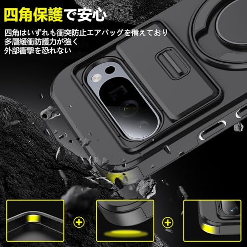 WZOYXOC 対応 Google Pixel 10 用 ケース Pixel 10 Pro 用 ケース スタンド付き リング付き 耐衝撃 レンズ保護 スライドカメラカバー TPU+PC 軽量 滑り止め 落下保護 スタンド機能 車載ホルダー対応 ピクセル 10/ピクセル 10 Pro 携帯カバー 黒 R-LK-GP10P-01
