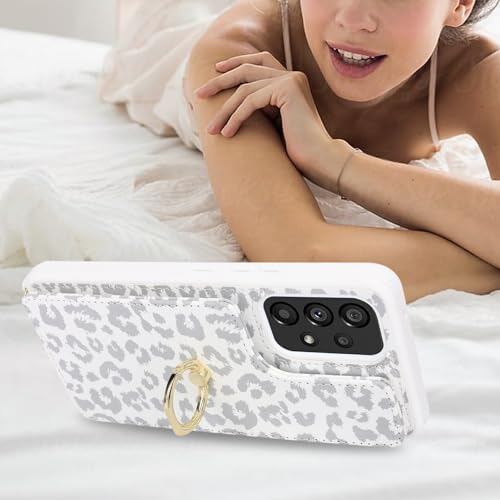 Galaxy A53 5G ケース ショルダー リング付き ストラップケース スマホケース ショルダーケース ポシェット SC-53C docomo ケース SCG15 au 対応 サムスン ギャラクシー A53 カバー SC53C スマホケース 適用 case iCoverCase カードケース スタンド 斜め掛け 携帯カバー 豹柄 ヒョウ柄 ホワイト