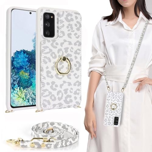 Galaxy S20 ケース ショルダー リング付き ストラップケース ショルダーケース ポシェット Galaxy S20 5G ケース SC-51A docomo SCG01 au 対応 SC51Aケース SCG01 エス20 カバー サムスン ギャラクシーS20スマホケース 適用 case iCoverCase カードケース スタンド 斜め掛け 携帯カバー 豹柄 ヒョウ柄 ホワイト