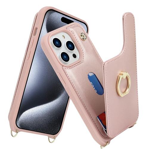 iPhone 15 pro ケース ショルダー リング付き ストラップケース スマホケース ショルダーケース ポシェット iPhone15pro いphone15pro アイホン 15proケース iPhone 15 pro アイフォン15pro アイフォン カバー アップル 15プロ 適用 case iCoverCase カードケース スタンド 斜め掛け 携帯カバー ピンク