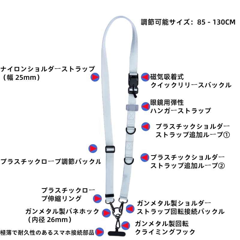 [ZFNEAM] 【新改良】多機能スマホストラップ 幅2.5cm 磁気吸着式クイックリリース 首掛け/斜め掛け/肩掛け/瞬時の着脱で便利 対応スマホケース ショルダーストラップ ネックストラップ 通学 旅行 登山 アウトドア