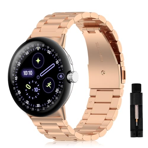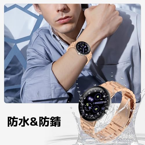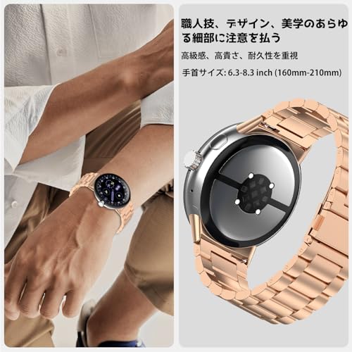 [AiMaoo] バンド Google Pixel Watch 4 41mm (2025) 対応 交換バンド 男女兼用 金属ベルト 高級 サイズ調整可能 ビジネス風 ステンレス おしゃれ 調整工具付 Pixel Watch 4 41mm用 (ローズゴールド)