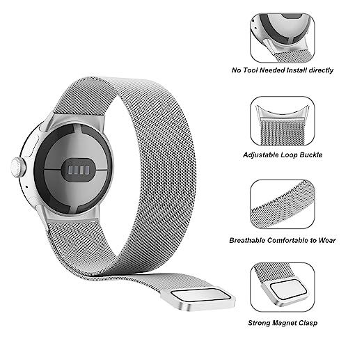 [Vancle] ベルト for Google Pixel Watch 3 41mm/2/1 バンド Pixel Watch用 交換ベルト, ステンレス製金属 ンバンド 交換 調節可能(シルバー)