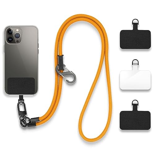 UMIMO スマホショルダー 直径7mm【ホルダー3枚 S型カラビナ付】 スマホストラップ アウトドア 携帯ストラップ 斜めがけ 肩掛け 首掛け 落下防止 調節可能 全機種対応 (オレンジ)