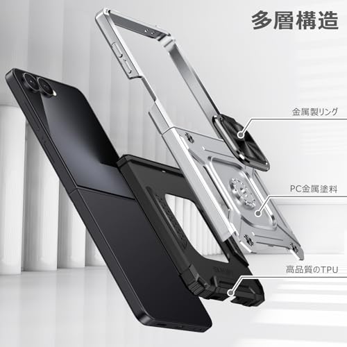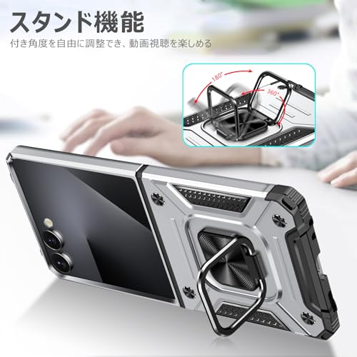 TMUJWS Galaxy Z Flip7 用ケース リング 衝撃吸収 耐衝撃 TPU+PCバンパー 二重構造 米軍MIL規格 全面保護カバー 滑り防止 車載ホルダー対応 擦り傷防止 滑り止め 軽量 薄型 ギャラクシー フリップ7 用ケース 6.85インチ 指紋防止 耐久 おしゃれ 人気 携帯カバー 銀 MZ91-46
