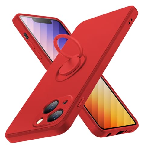 TLOMPLO ケース 対応 iPhone 14 用の ケース 耐衝撃リング付き シリコン 薄型 スリム tpu 磨り表面 指紋防止 カバー 柔らかい裏地 米軍MIL規格 黄ばみなし レンズ保護 滑り止め 柔軟性 擦り傷防止 赤 N413-Aip14-02