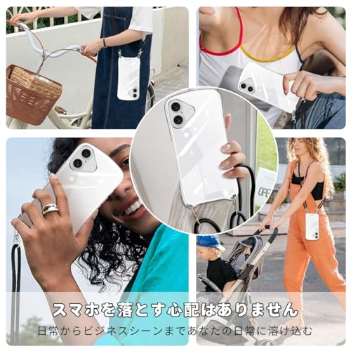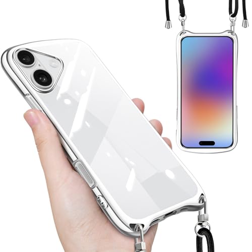 iPhone 16 用の ケース ショルダー ストラップ iPhone16 用の カバー クリア 肩掛け 斜めかけ 韓国 アイフォン16 用 透明 スマホケース (シルバー)