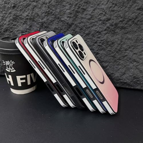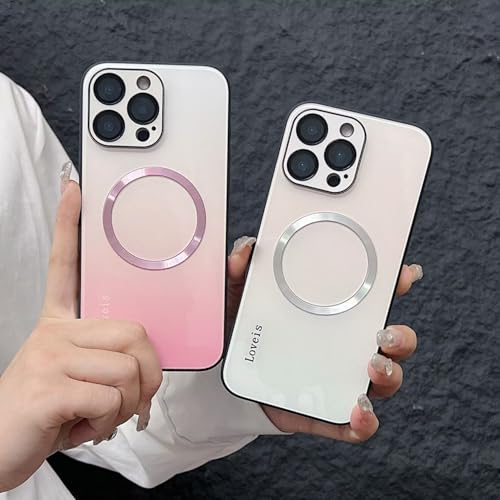GOOVEN おしゃれ iPhone 16 Pro用のケース magsafe対応 薄型 ガラスケース グラデーション Magsafe充電対応 ストラップホール レンズ保護カバー付き マグネット搭載 強化ガラス TPUバンパー,グラデーション赤