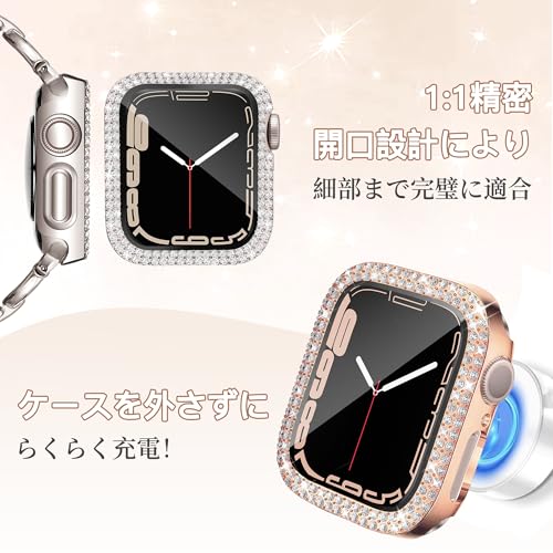 【華やか2点セット】 Sovioキラキラダイヤデザイン44mm対応アップルウォッチカバーSeries (Se 3 2 1)/6/5/4、全面保護対応Apple Watchカバー、タッチ感度を高&超高透過率のあっふウォッチカバー、取り付け簡単 強化ガラス、完璧なフィット感対応Apple Watchケース、ラグジュアリーな魅力満点互换アップルウォッチケース(ローズゴールド&スターライト)