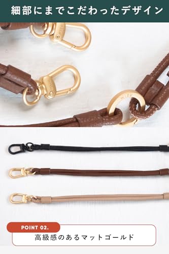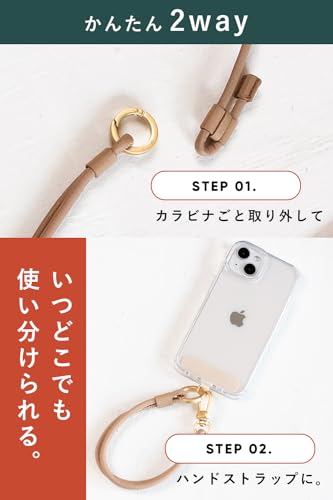 【ショルダーとハンドの2WAYタイプ】カラビナ部分で長い方と短い方を分け、短い方のみを使用するとハンドストラップにもなる2WAY仕様!これ1つでシーンに応じて使い分けられる便利アイテム。カラビナにキーリングなどを付けて自分なりにカスタマイズもできます。