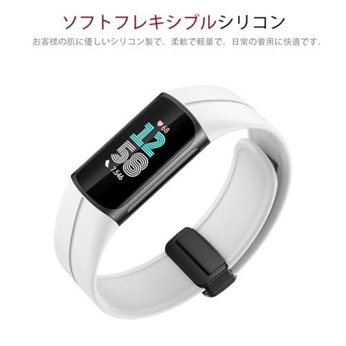 Miimall 対応 Fitbit Charge 5/ Charge 6 バンド シリコン 交換ベルト 柔らかい 磁気バンド スポーツ 調節可能 軽量 フィットビット チャージ 6/チャージ 5 に対応(ホワイト)