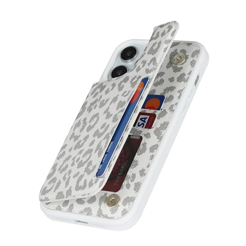 iPhone 14 Pro ケース 背面 アップル iphone 14 pro 保護カバー アイフォン 14 プロ スマホケース iphone 14 pro 携帯カバー iphone 14 pro case zouzt 革レザー 軽量 財布型 カード収納 マグネットボタン スタンド機能 滑り止め 放熱性 耐衝撃 おしゃれ 便利さ 8色 ホワイト+ヒョウ柄