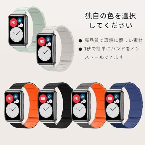 [Hinnwer] シリコン バンド Huawei Watch Fit/Huawei Watch Fit Elegant 対応 ファーウェイ スマートウォッチ バンド 磁気シリコン 時計ベルト マグネット スポーツ 交換ストラップ 柔らかい 防水 長さ調節 交換バンド ファーウェイ Watch Fit/Watch Fit Elegant 用 (ブラック)