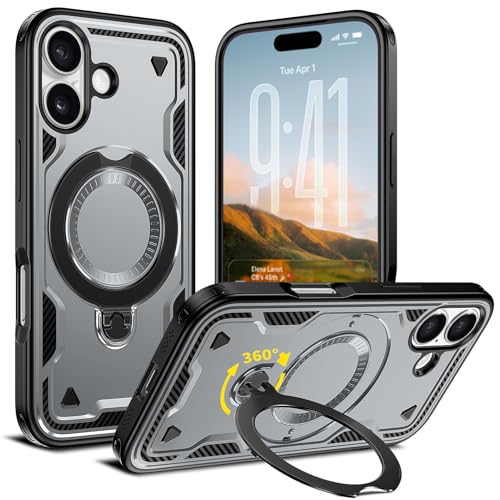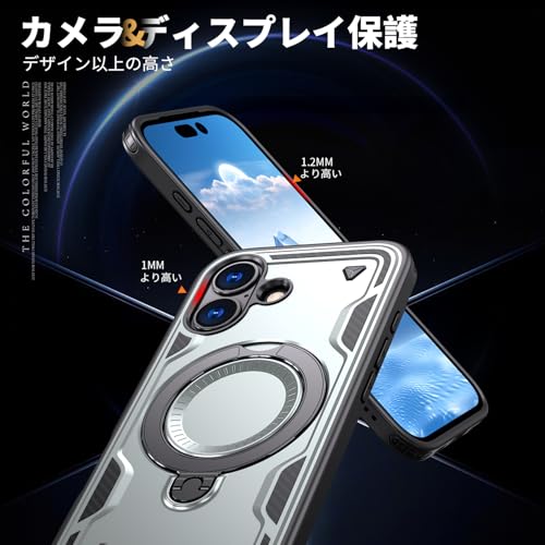 iPhone 17 対応 ケース 耐衝撃 スタンド付き MagSafe対応 カバー リング TPU+PC ワイヤレス充電 米軍MIL規格取得 スタンド機能 (グレー)117-IP17-07